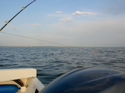 She finally got the fish in the boat after a 15 minute battle. It was caught on a chartreuse umbrella rig with tandem parachutes.